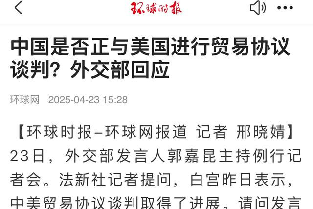4月23日,外交部发言人郭嘉昆主持例行记者会。郭嘉昆表示,“中方早就指出,关税战、贸易战没有赢家,保护主义没有出路,脱钩断链只会孤立自己。对于美国发动的关税战,中方的态度很明确:我们不愿打,也不怕打。打,奉陪到底;谈,大门敞开。”
